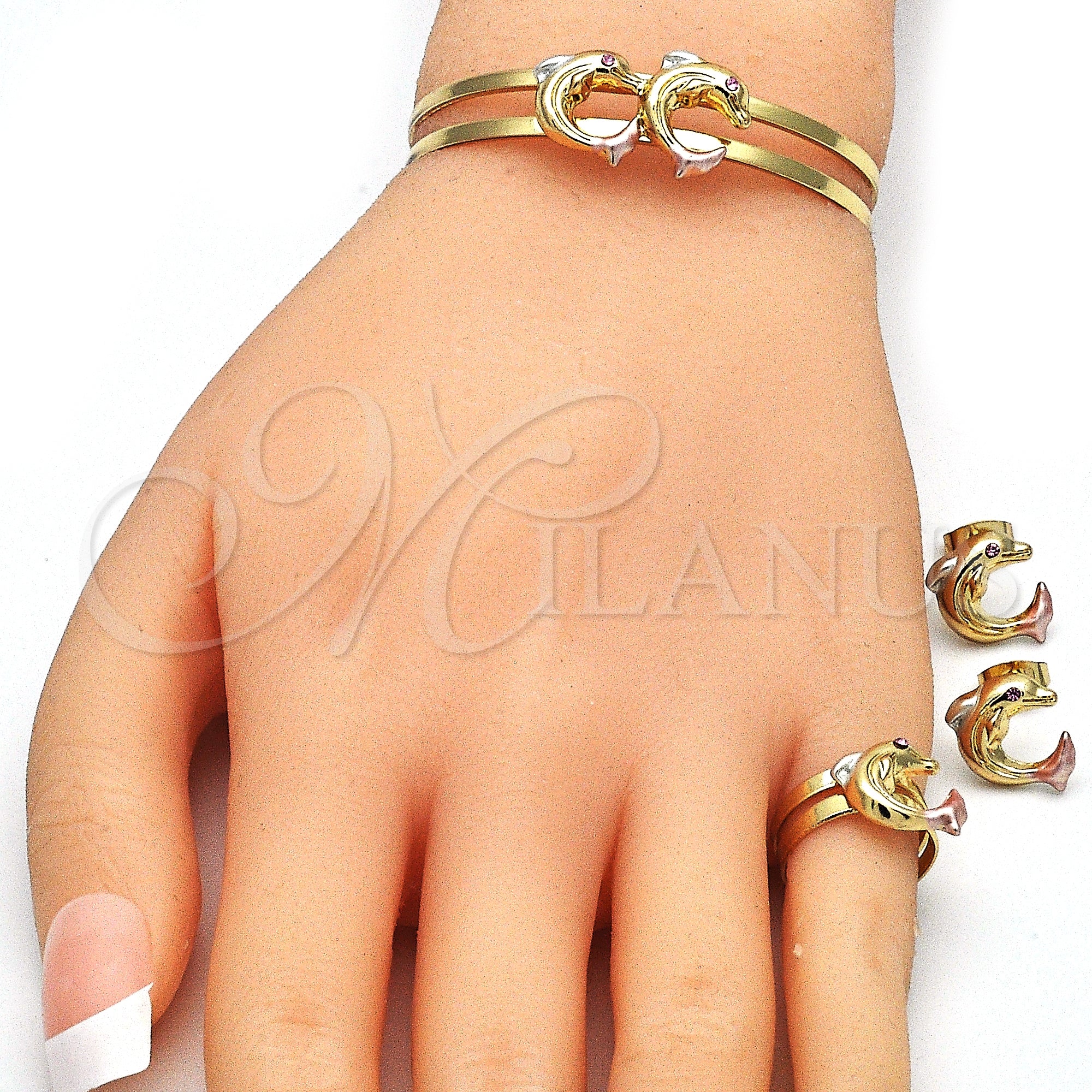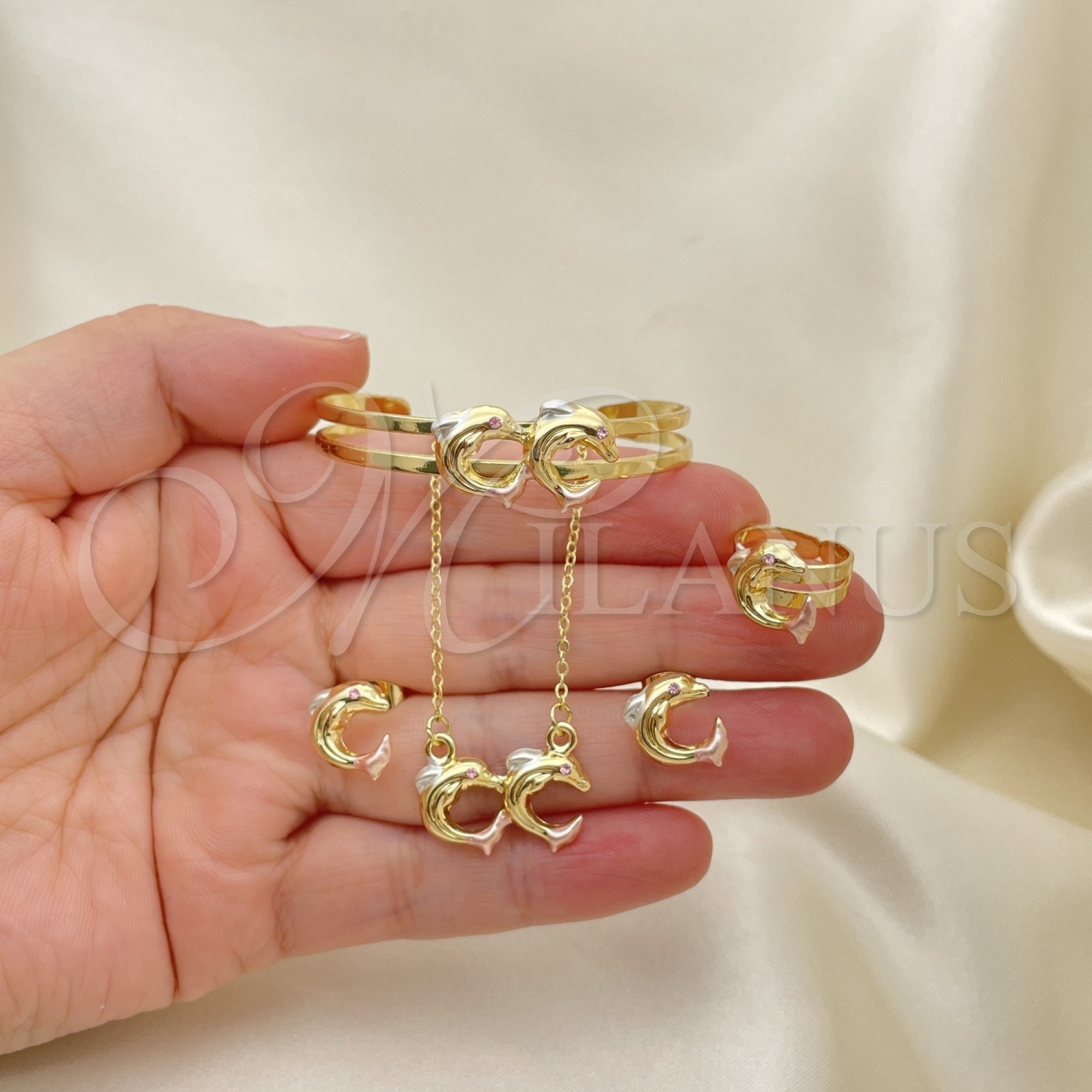 • Juego de Arete y Dije de Nino de Oro Laminado.