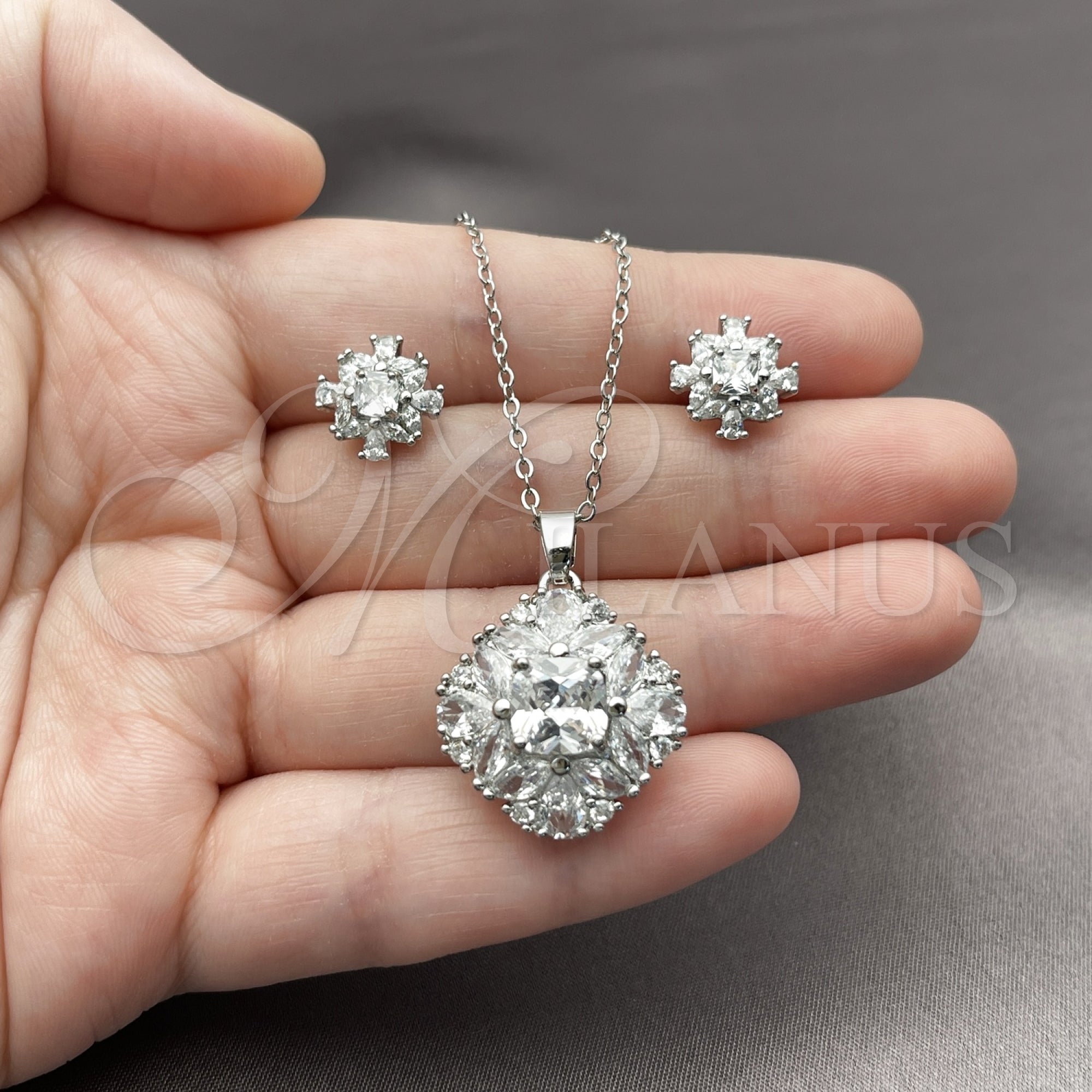 • Juego de Arete y Dije de Adulto de Rodio Laminado.
