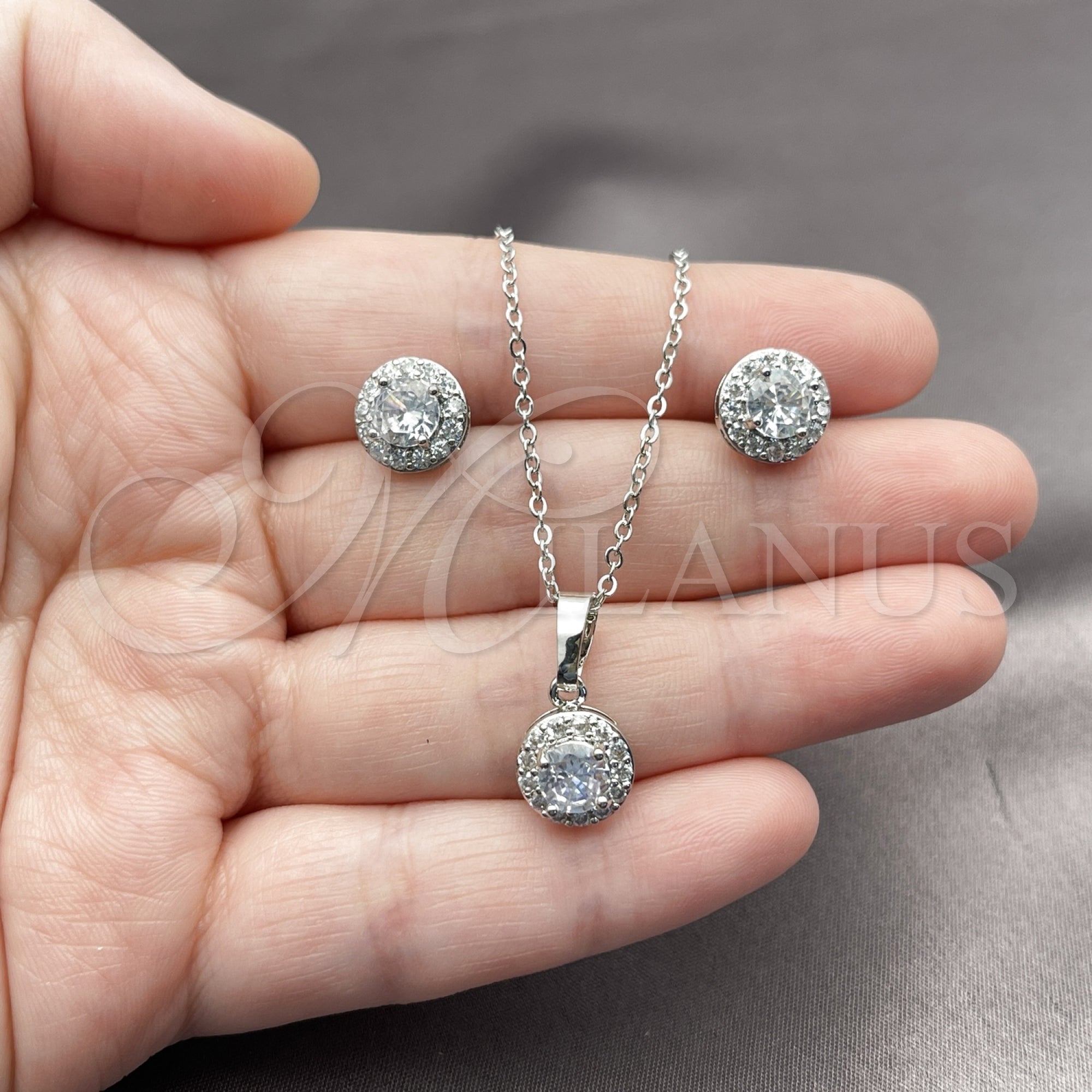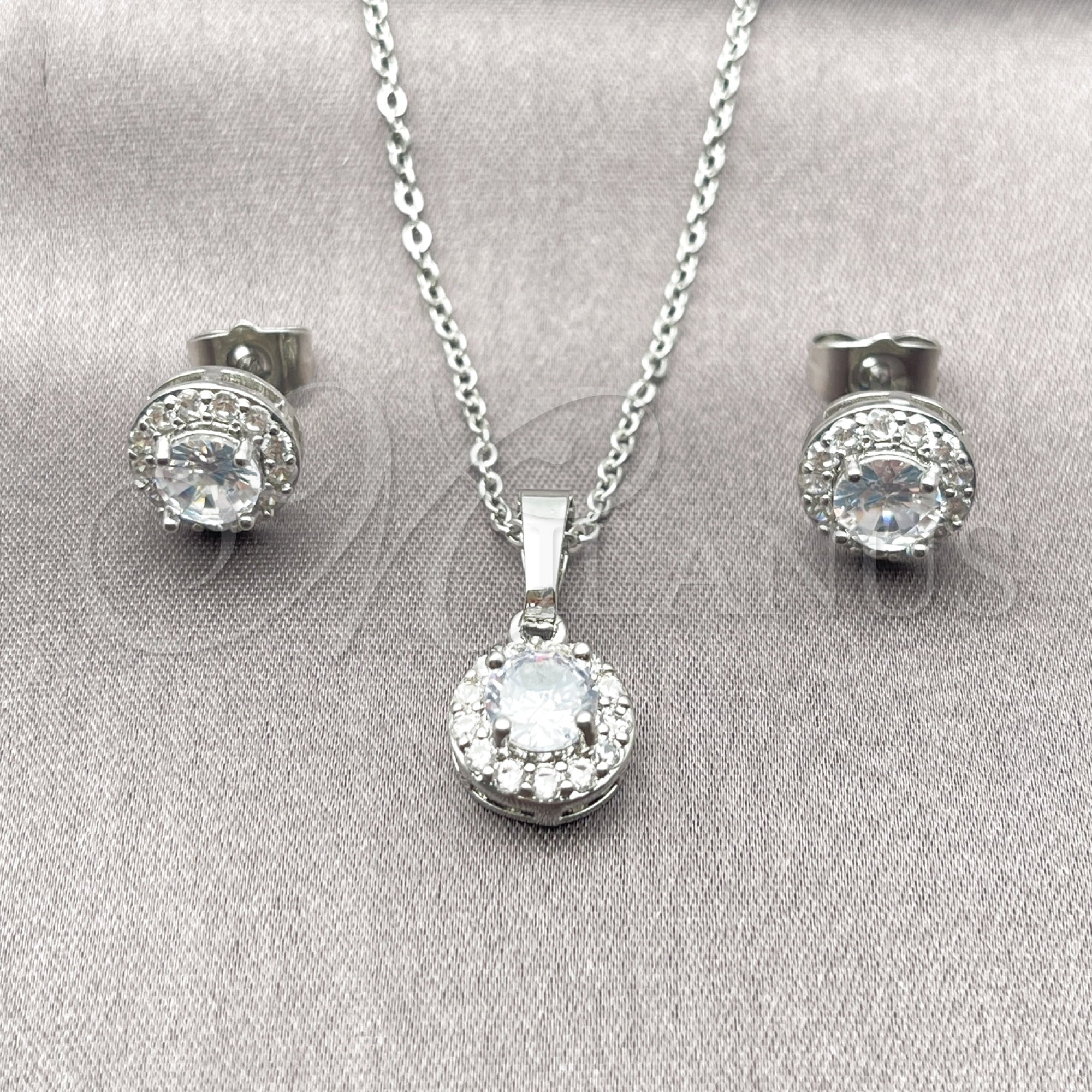 • Juego de Arete y Dije de Adulto de Rodio Laminado.