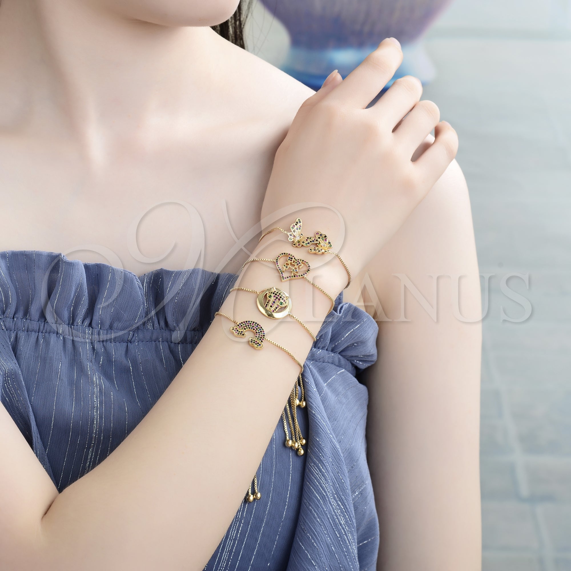 • Pulsera Bolo Ajustable de Oro Laminado.